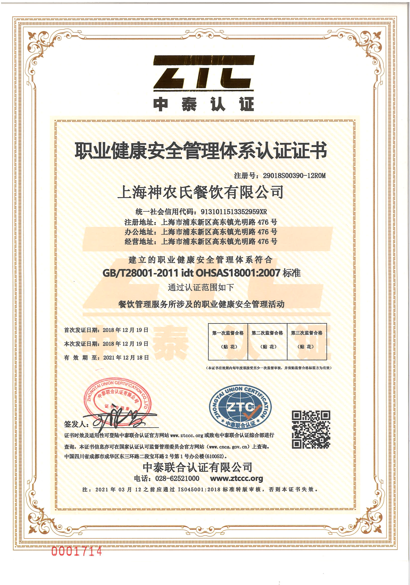 職業(yè)健康安全管理體系認(rèn)證書(shū)