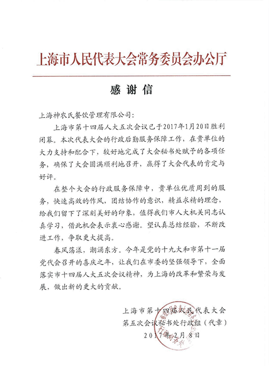 我公司在團餐領(lǐng)域取得的成績得到了市、區(qū)政府等有關(guān)部門的認可。經(jīng)市政府有關(guān)部門的多次考證、層層篩選,從2005年開始,我公司已成為上海市人代會和黨代會指定的餐飲服務(wù)供應(yīng)商。我們提供的餐飲服務(wù)得到了廣大參會代表的一致好評。同時我們也已參與市級各類大型活動的餐飲供應(yīng)。